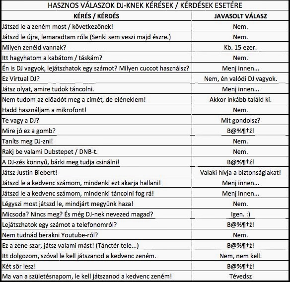 Az alábbi kérések, kérdések, helyzetek próbára teszik a DJk türelmét, tűrőképességét: